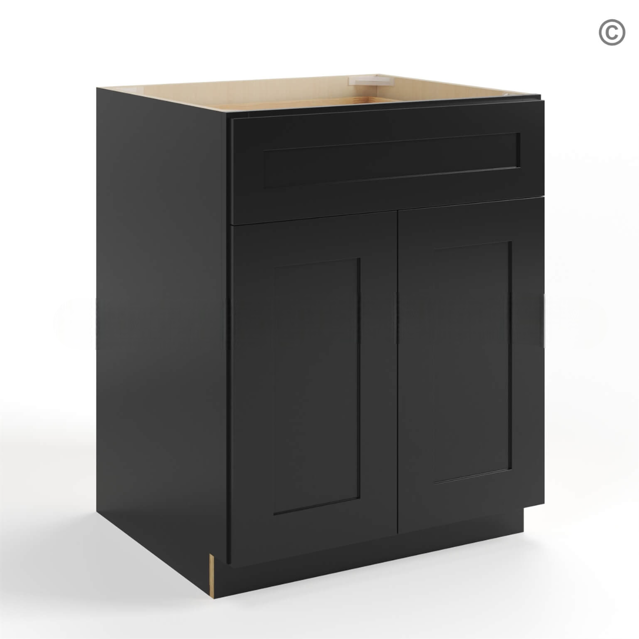 Black Shaker Base Cabinet with Double Doors & Single Drawer