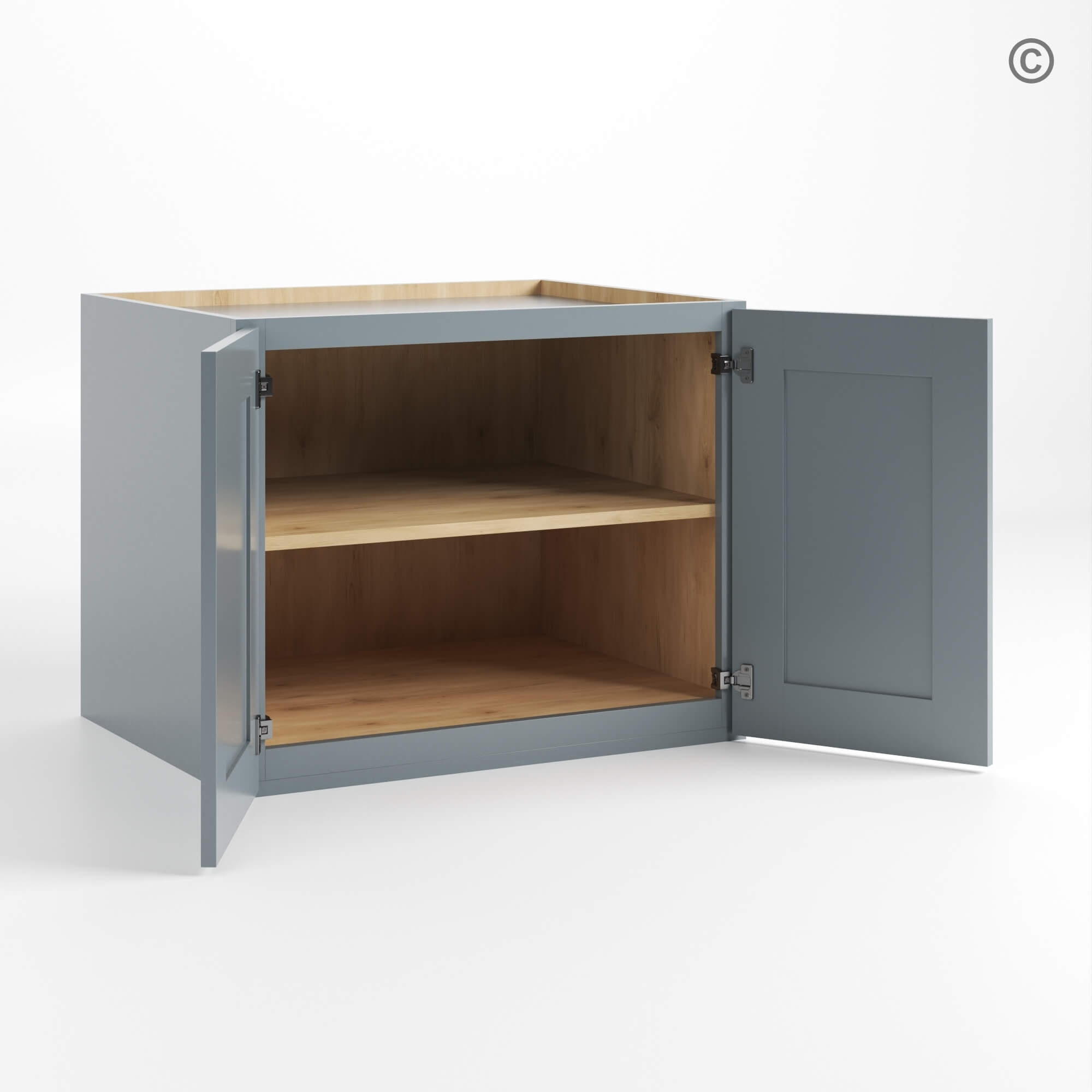 Our Gray Shaker 24 H Refrigerator Wall Cabinet 24 Deep is 24″ tall, 24″ deep, and available in 3 different widths (30″, 33″, 36″). This gray shaker cabinet will fit perfectly in your kitchen or bathroom. The brilliant shade of shaker gray cabinets will make your rooms exude modernity and quality.