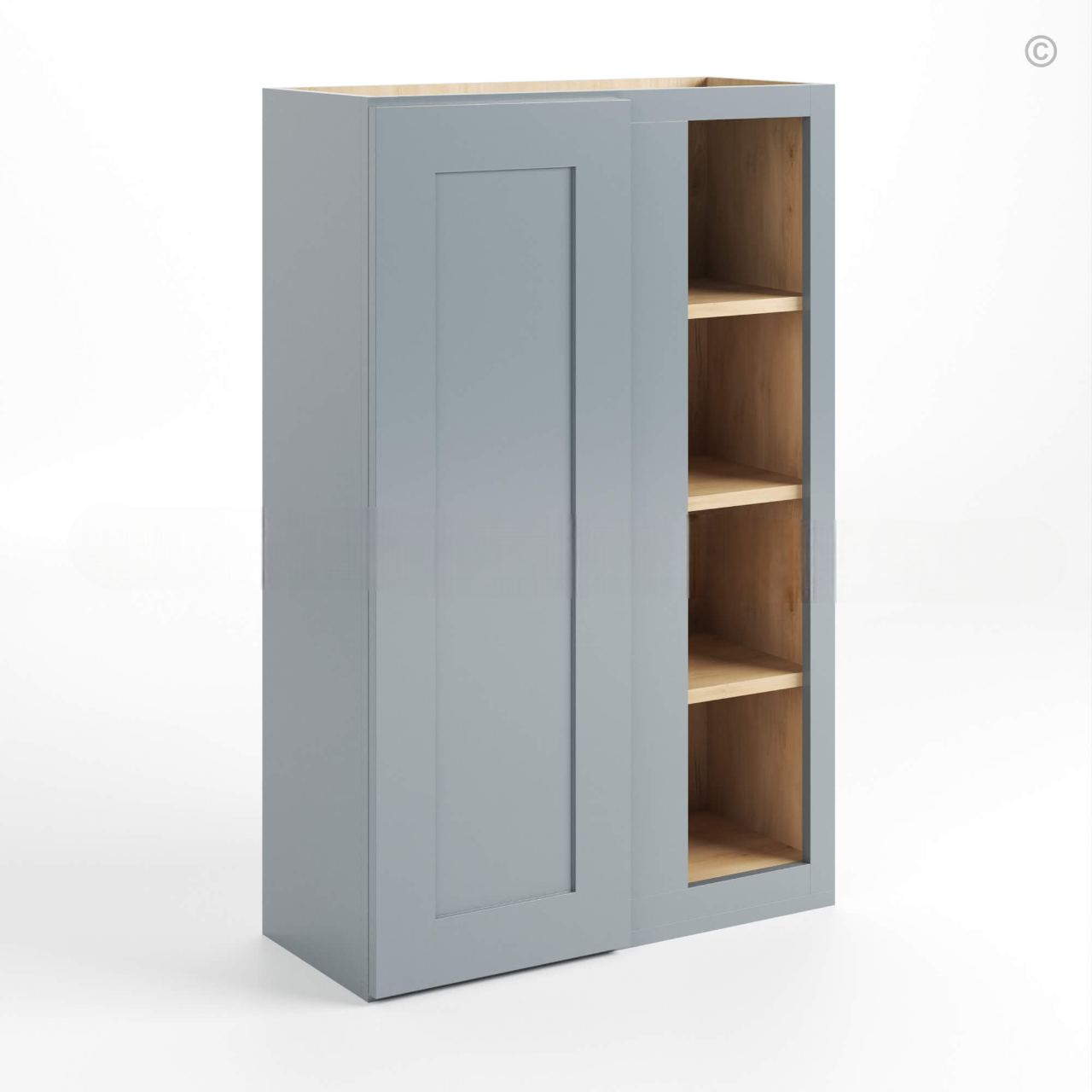 Our Gray Shaker 42 H Wall Blind Cabinet is 42″ tall, 12″ deep, and available in 3 different widths (24″, 27″, 36″). This gray shaker cabinet will fit perfectly in your kitchen or bathroom. The brilliant shade of shaker gray cabinets will make your rooms exude modernity and quality.