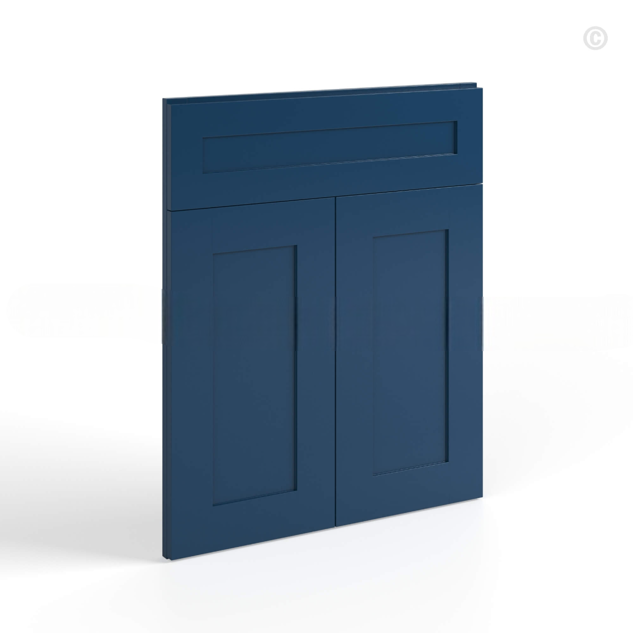 Our Navy Blue Shaker Corner Sink Base Front is 26.25″ Wide and 30″ tall. This cabinet Navy Blue will fit perfectly in your kitchen or bathroom. The brilliant shade of shaker blue cabinet will make your rooms exude modernity and quality.