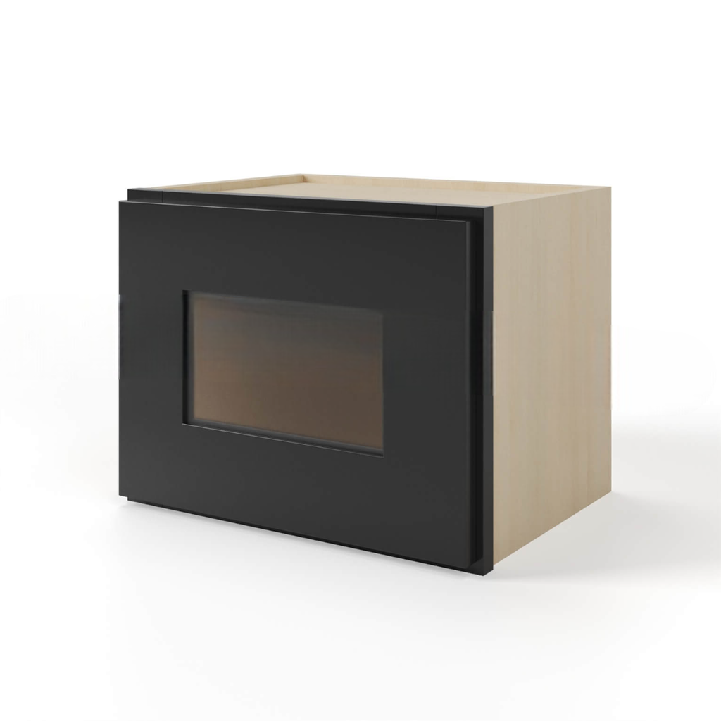 Our Gray Shaker Black Shaker 12 H Single Door Wall Cabinet with Glass Door is 12″ in height and available in 4 widths (12″, 15″, 18″, 21″). This gray shaker cabinet will fit perfectly in your kitchen or bathroom. The brilliant cabinet Black will make your rooms exude modernity and quality.