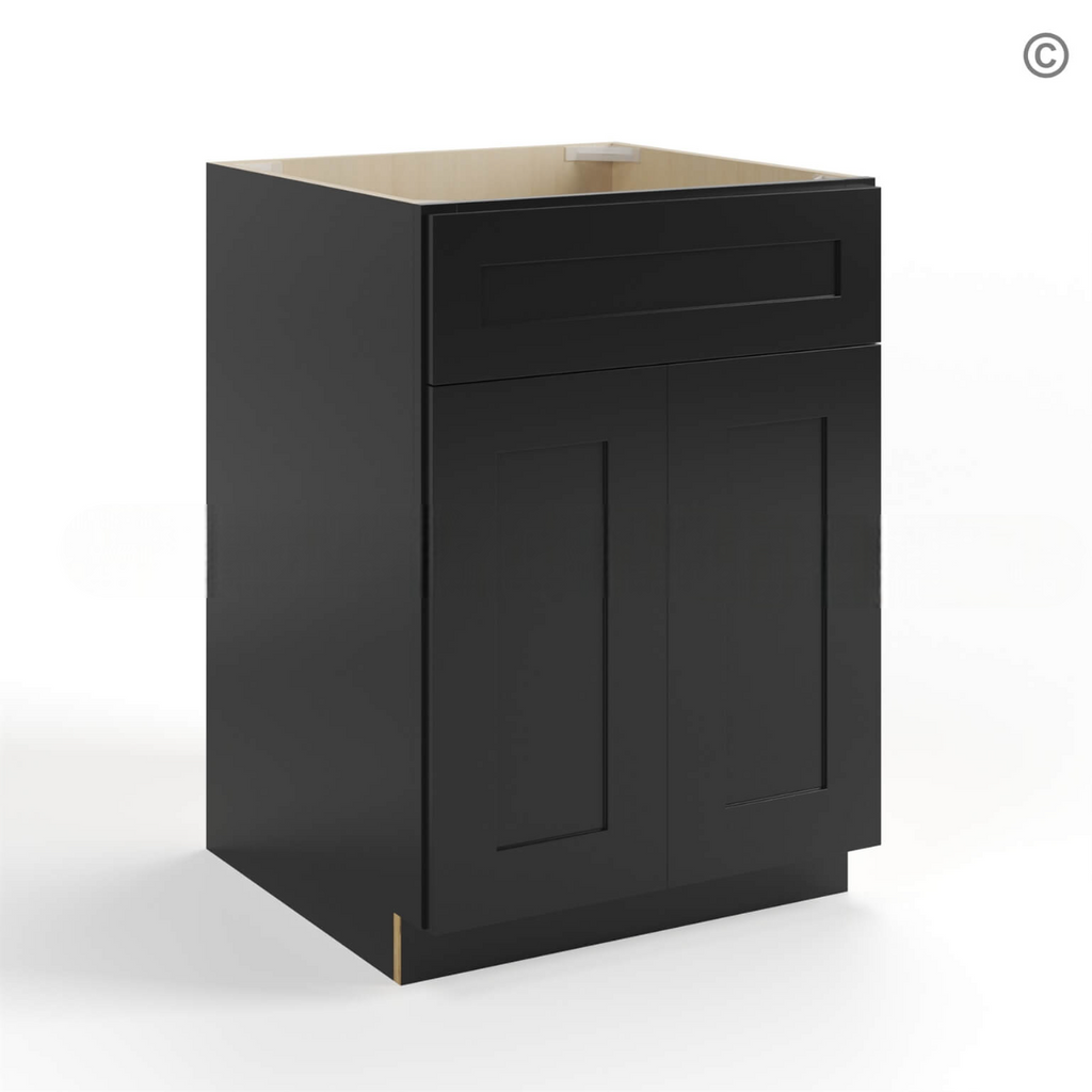 Our Black Shaker Single Vanity Sink Base Cabinet is 34.5″ Tall, 21″ Deep, and available in 2 widths (24″, 27″). This cabinet features 1 dummy drawer. This cabinet Black will fit perfectly in your kitchen or bathroom. The brilliant shade of shaker Black cabinet will make your rooms exude modernity and quality.